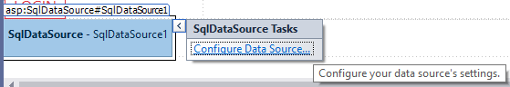 Click on the SQL Data Source control and click on the smart tag (>). Then, select Configure Data Source.