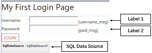 I see Control as a useful feature in ASP.NET which helps us to speed up our web development process. Of course, it also provides a more structured programming model for the web site. We are going to add three controls (two Label controls and one SQL Data Source control) in our Login page: